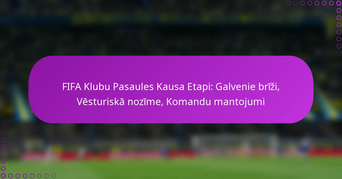 Kādi ir galvenie mirkļi FIFA Klubu Pasaules Kausa vēsturē?