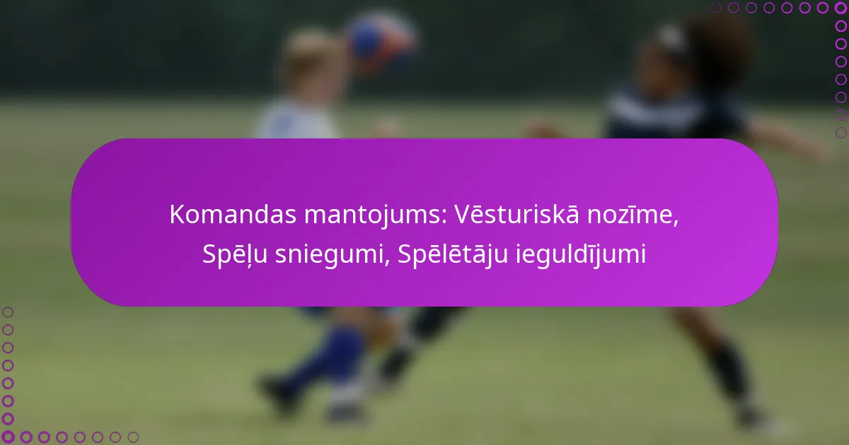 Sporta komandas mantojums ir sarežģīti izveidots no tās vēsturiskās nozīmes, neaizmirstamām spēļu izrādēm un izcilo spēlētāju ieguldījuma. Dibināšanas vēsture un nozīmīgi sasniegumi ne tikai nosaka komandas identitāti, bet arī veido tās kultūras nozīmīgumu kopienā. Galvenās spēles un izcilas individuālas izrādes vēl vairāk nostiprina šo mantojumu, ietekmējot fanu uztveri un komandas vietu vēsturē.